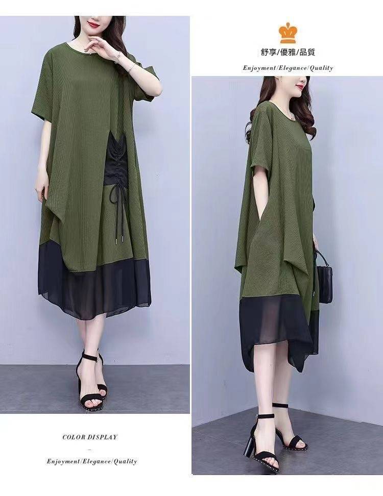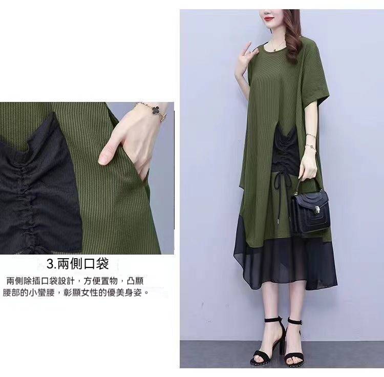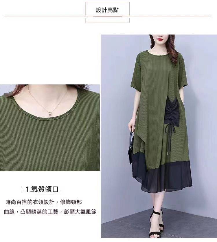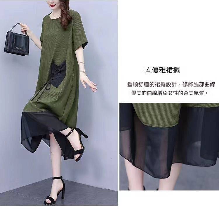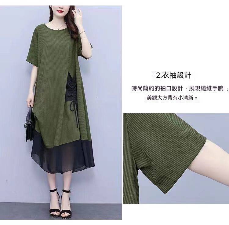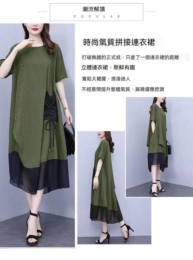 夏季顯瘦遮肉氣質拼接中長款連衣裙【買一送一】綠色+灰色各一件(到手兩件,每件均價549元)