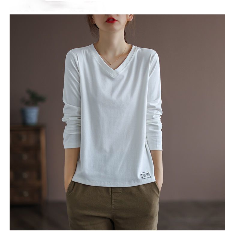 V領百搭女士純色長袖上衣【買一送二】【綠色】+【紅色】+【白色】各一件(到手3件,每件均價333元!)
