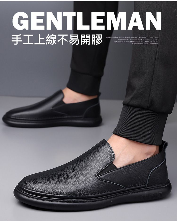 透氣懶人一腳蹬軟底休閒皮鞋【黑色】+【棕色】各一雙(優惠400)