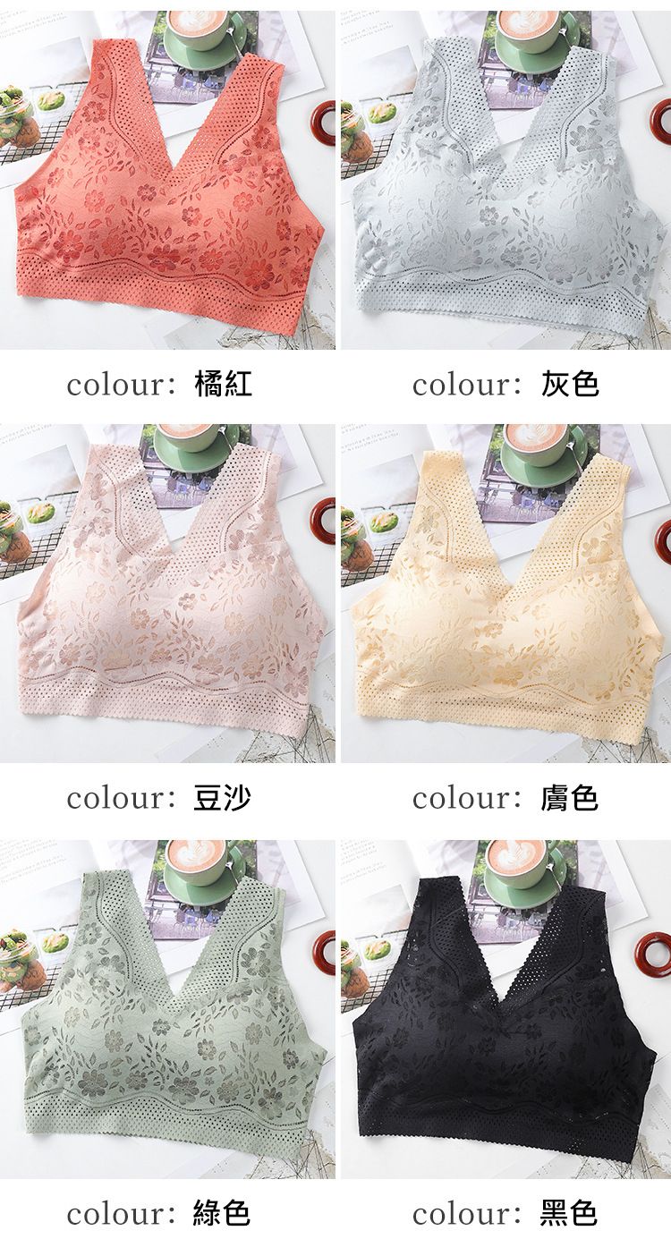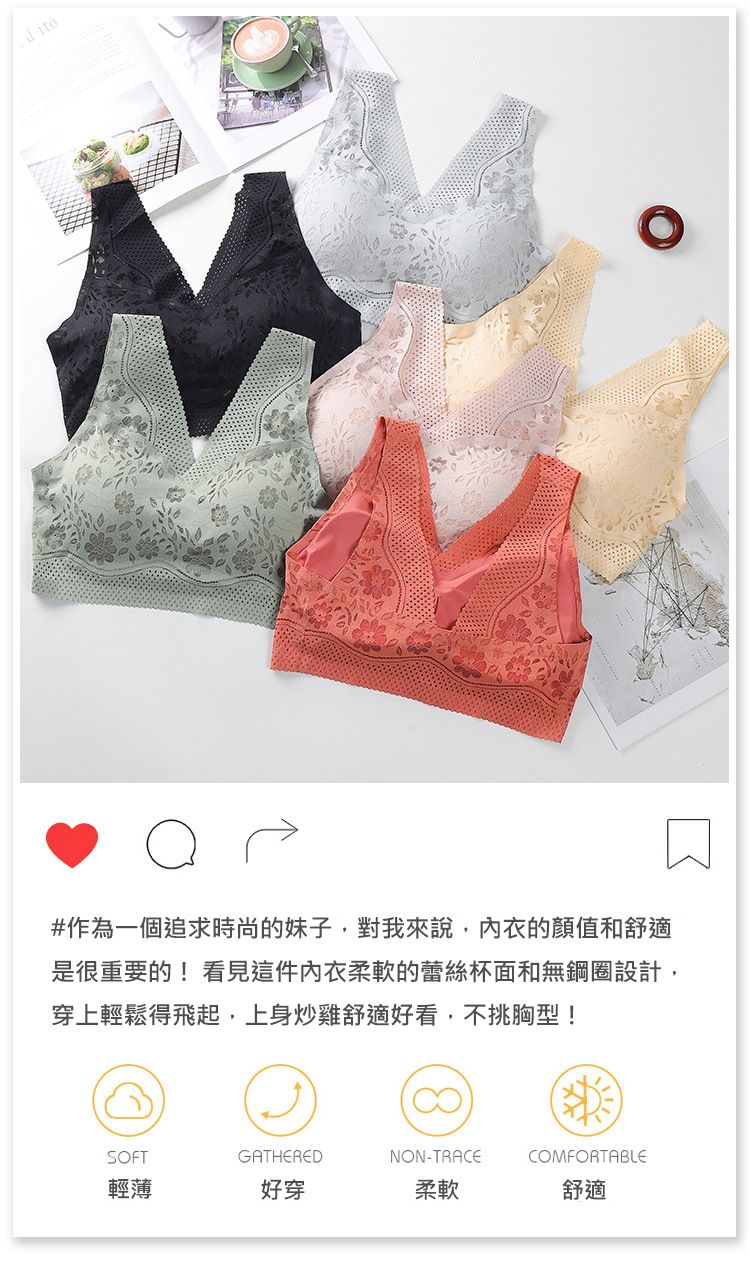 蕾絲美背帶胸墊無痕內衣【買一送二】灰色+綠色+桔紅色各一件(到手3件,每件均價333元!)