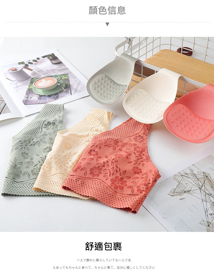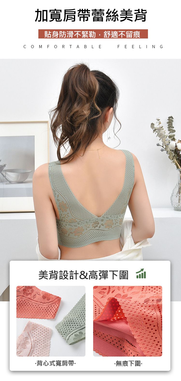 蕾絲美背帶胸墊無痕內衣【買一送二】綠色+豆沙色+桔紅色各一件(到手3件,每件均價333元!)
