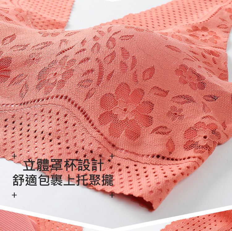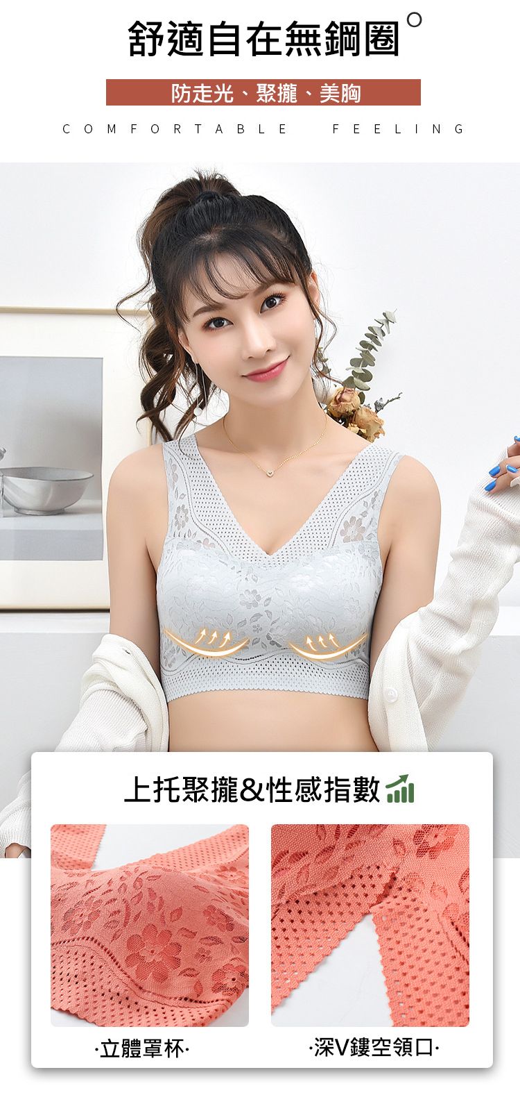 蕾絲美背帶胸墊無痕內衣【買一送二】膚色+灰色+桔紅色各一件(到手3件,每件均價333元!)
