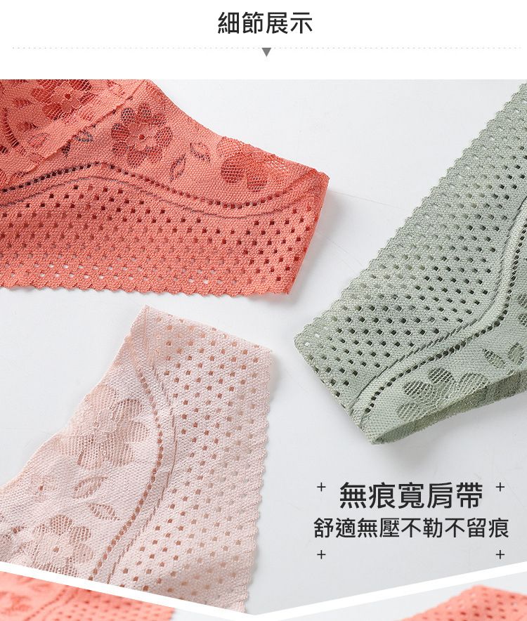 蕾絲美背帶胸墊無痕內衣【買一送二】膚色+綠色+桔紅色各一件(到手3件,每件均價333元!)