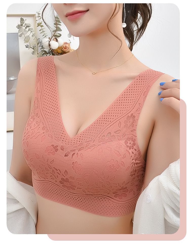 蕾絲美背帶胸墊無痕內衣【買一送二】灰色+豆沙色+桔紅色各一件(到手3件,每件均價333元!)