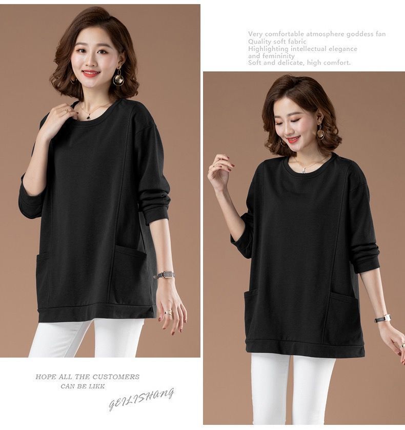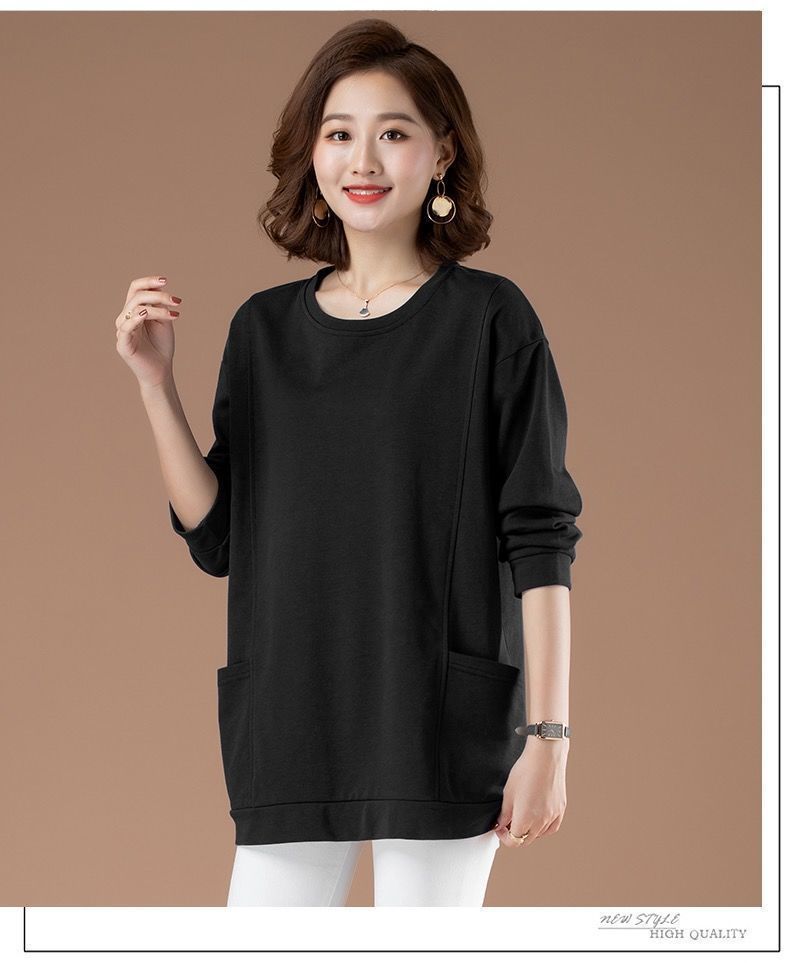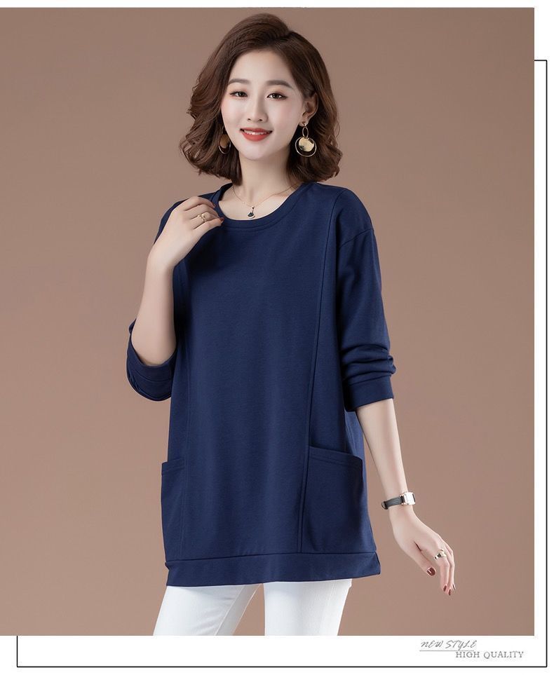 純棉新款女士長袖上衣【買一送一】【黑色】+【深藍色】各一件(每件低至649元)