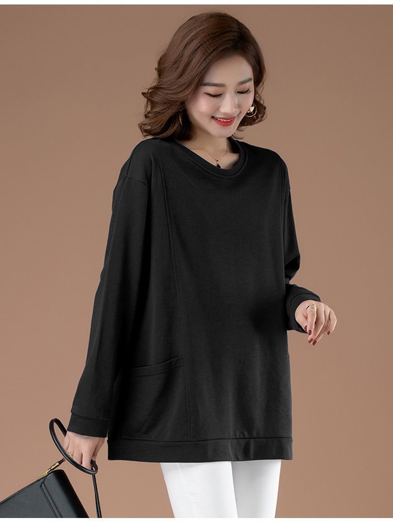 純棉新款女士長袖上衣【買一送一】【黑色】+【桔紅色】各一件(每件低至649元)
