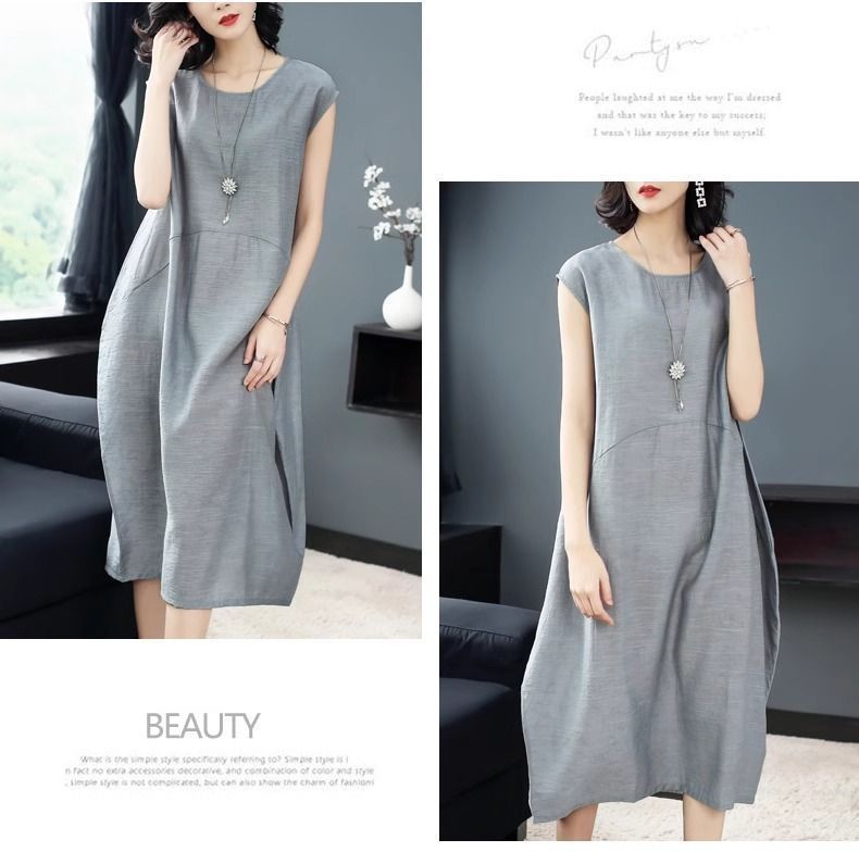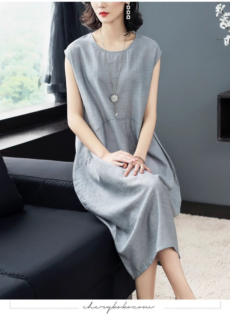 大氣簡約純色文藝中長款連衣裙【【買一送一】【銀灰色】兩件(到手兩件,每件均價549元)