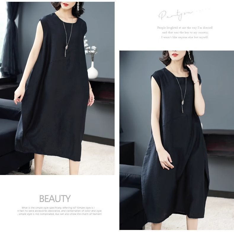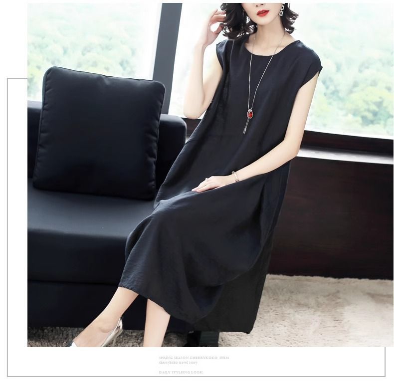 大氣簡約純色文藝中長款連衣裙【【買一送一】【黑色】兩件(到手兩件,每件均價549元)