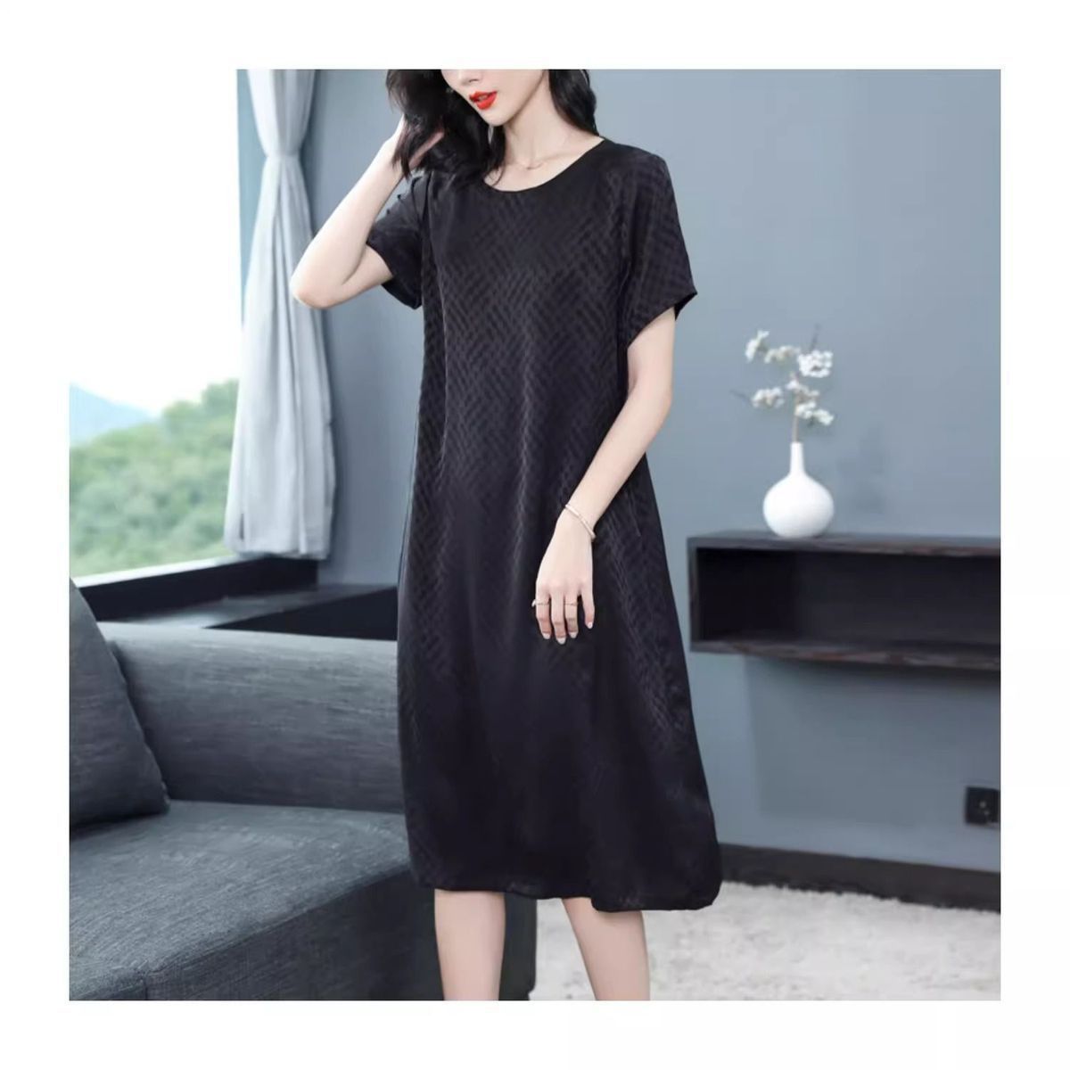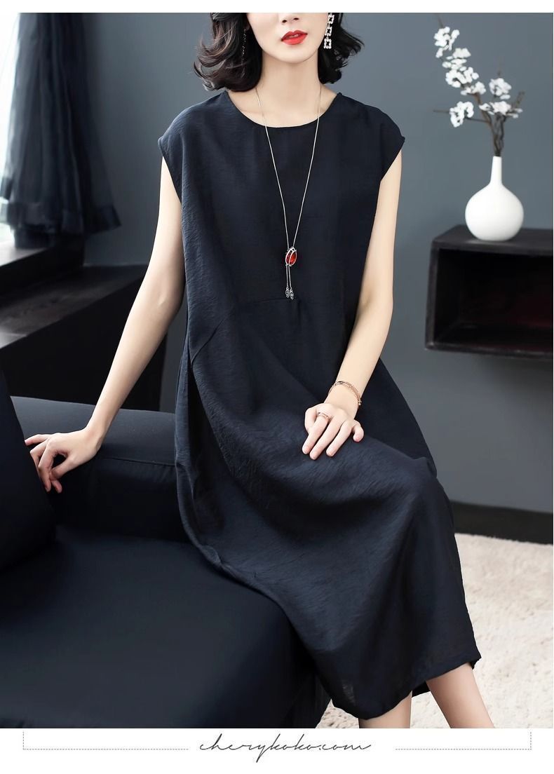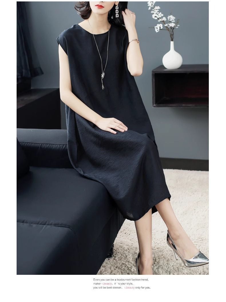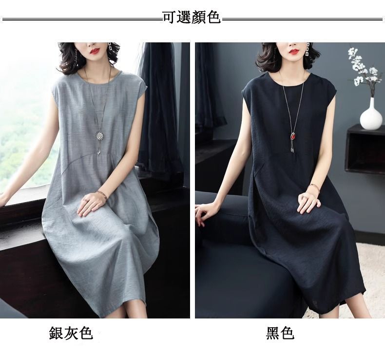 大氣簡約純色文藝中長款連衣裙【【買一送一】【黑色】+【銀灰色】各一件(到手兩件,每件均價549元)