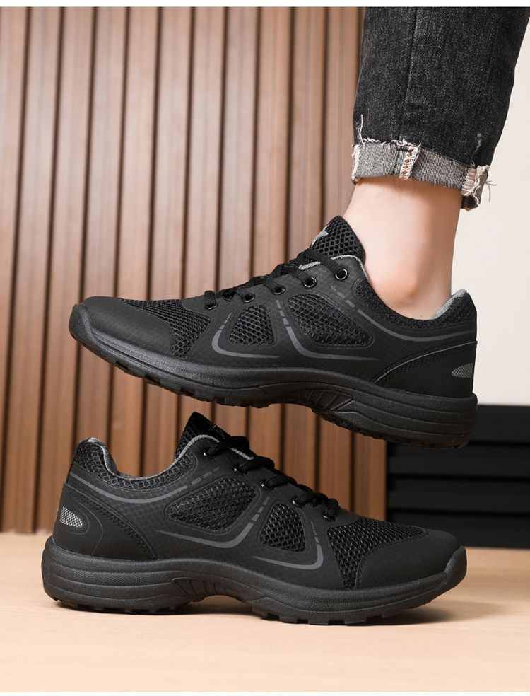 網眼透氣便捷繫帶圓頭男鞋【黑色大網眼】+【黑色小網眼】各一雙(到手2雙,每雙均價549元!)