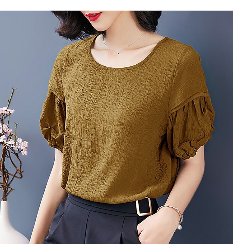 冰絲雪紡衫【買一送一】【枯黃色】+【孔雀綠】各一件(每件649元)