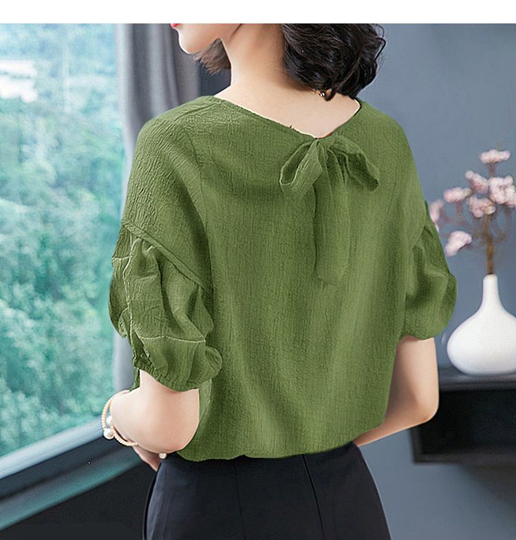 冰絲雪紡衫【買一送一】【草綠色】+【枯黃色】各一件(每件649元)