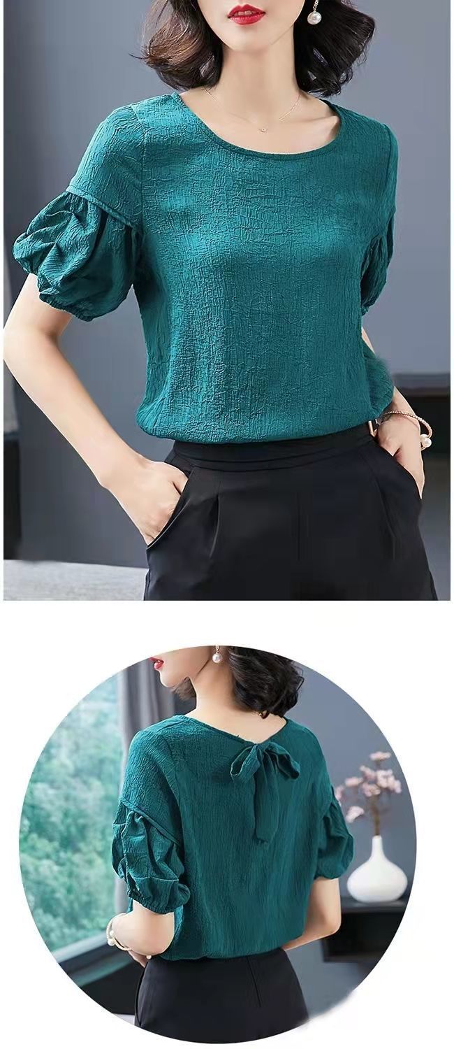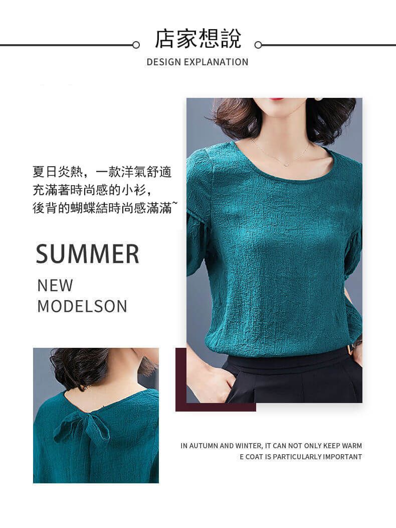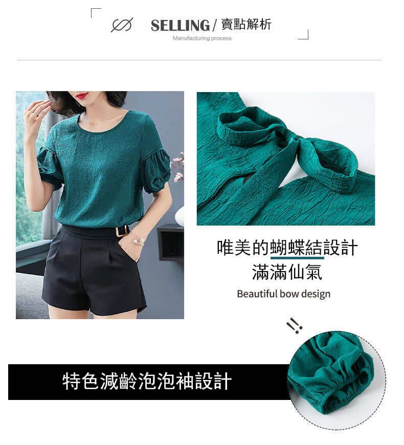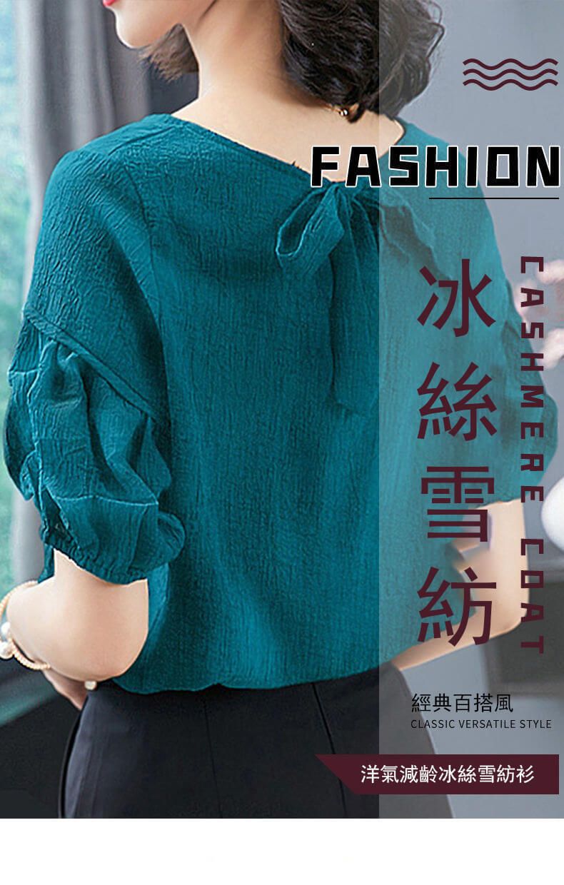 冰絲雪紡衫【買一送一】【草綠色】+【孔雀綠】各一件(每件649元)
