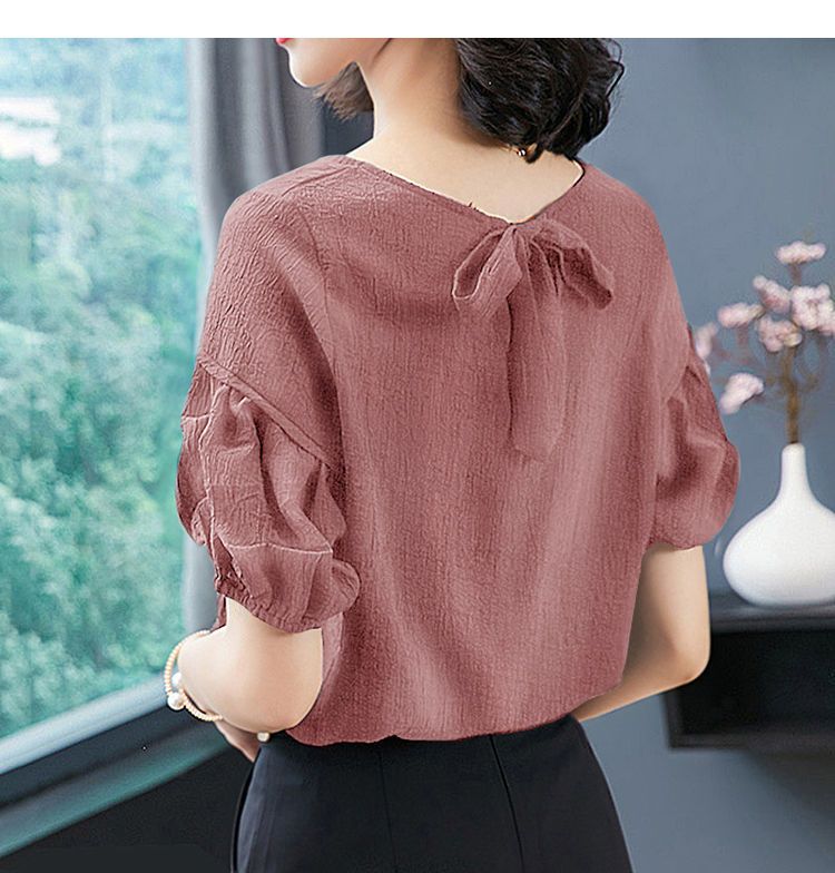 冰絲雪紡衫【買一送一】【皮粉色】+【枯黃色】各一件(每件649元)