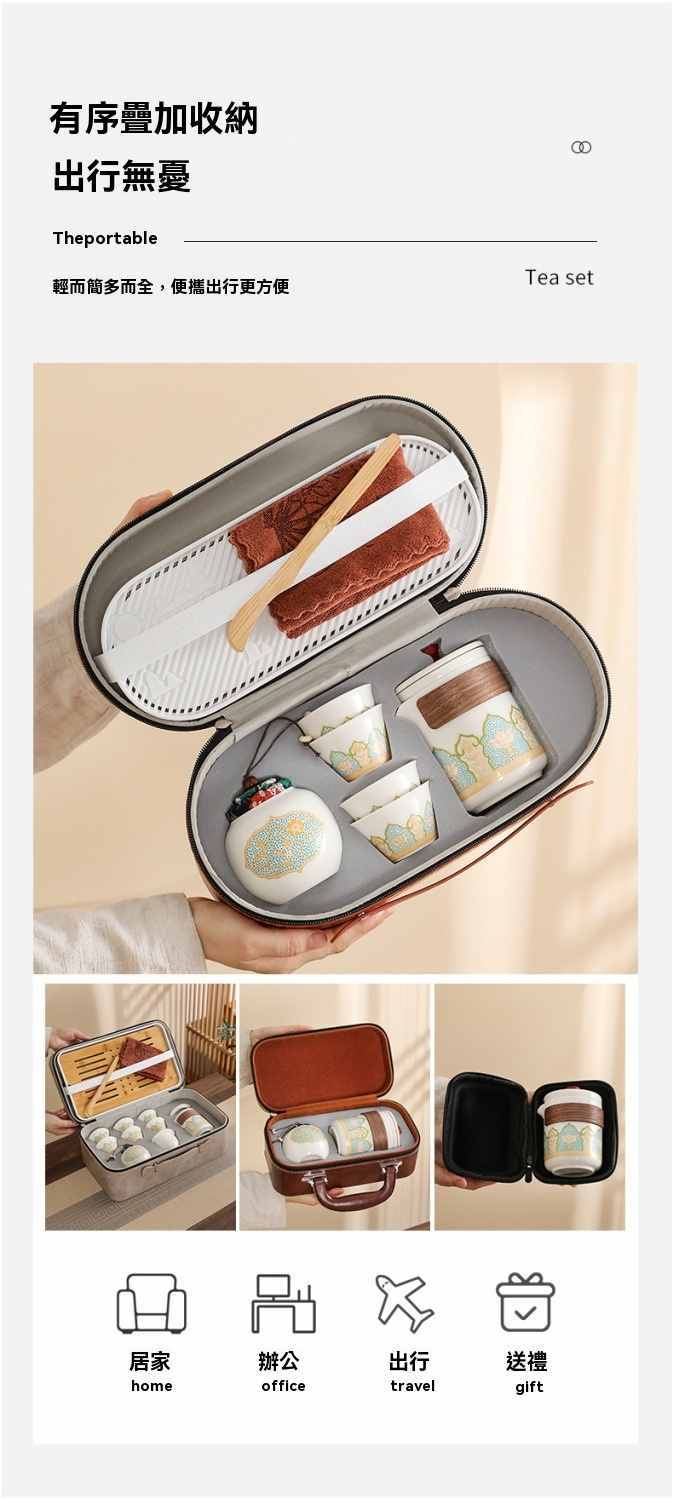 陶瓷套裝【雅黑】一壺四杯+罐巾夾+橢圓包+盤一組