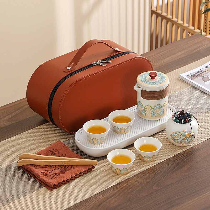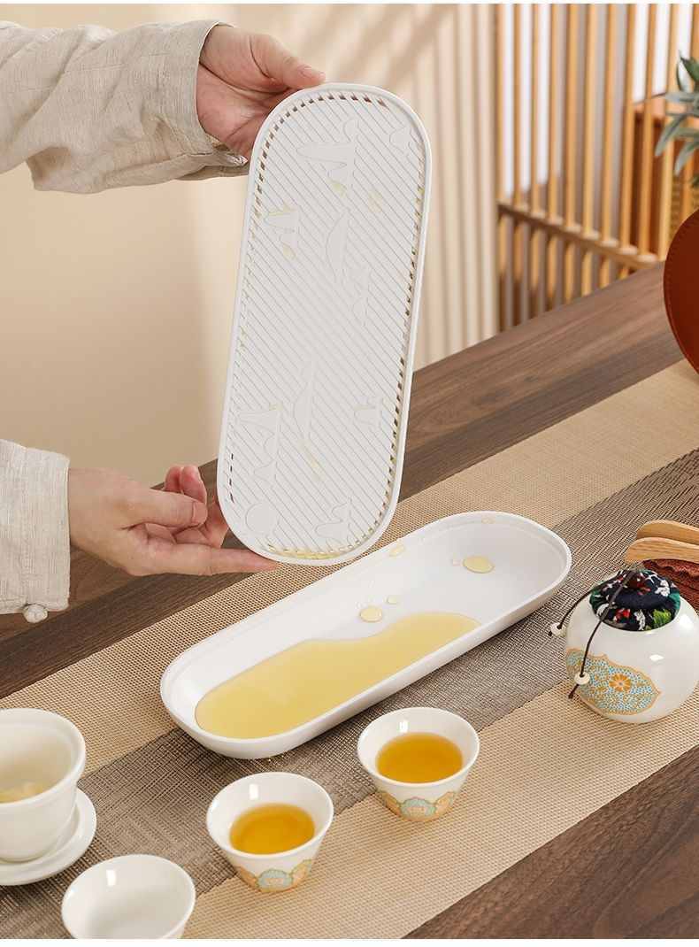 陶瓷套裝【玉白】一壺四杯+罐巾夾+橢圓包+盤一組
