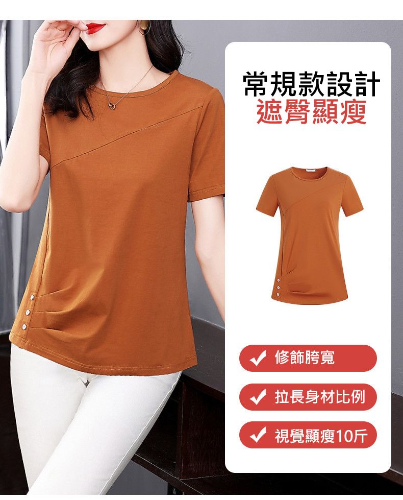 中年媽媽純色T恤【買一送一】【棕色】+【粉色】各一件(每件499元)
