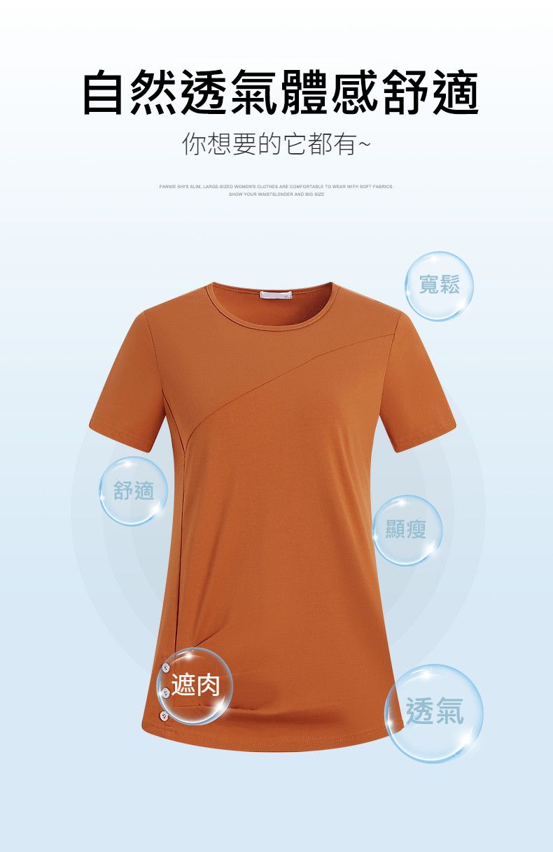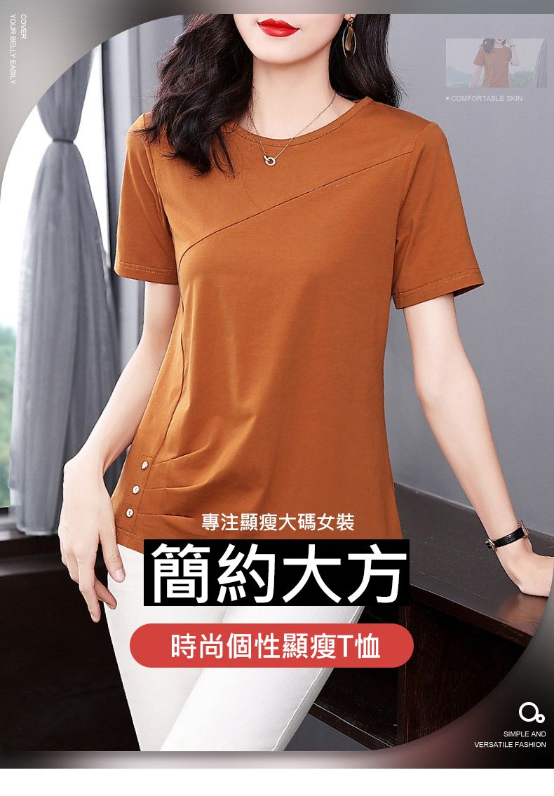 中年媽媽純色T恤【買一送一】【棕色】+【藍色】各一件(每件499元)
