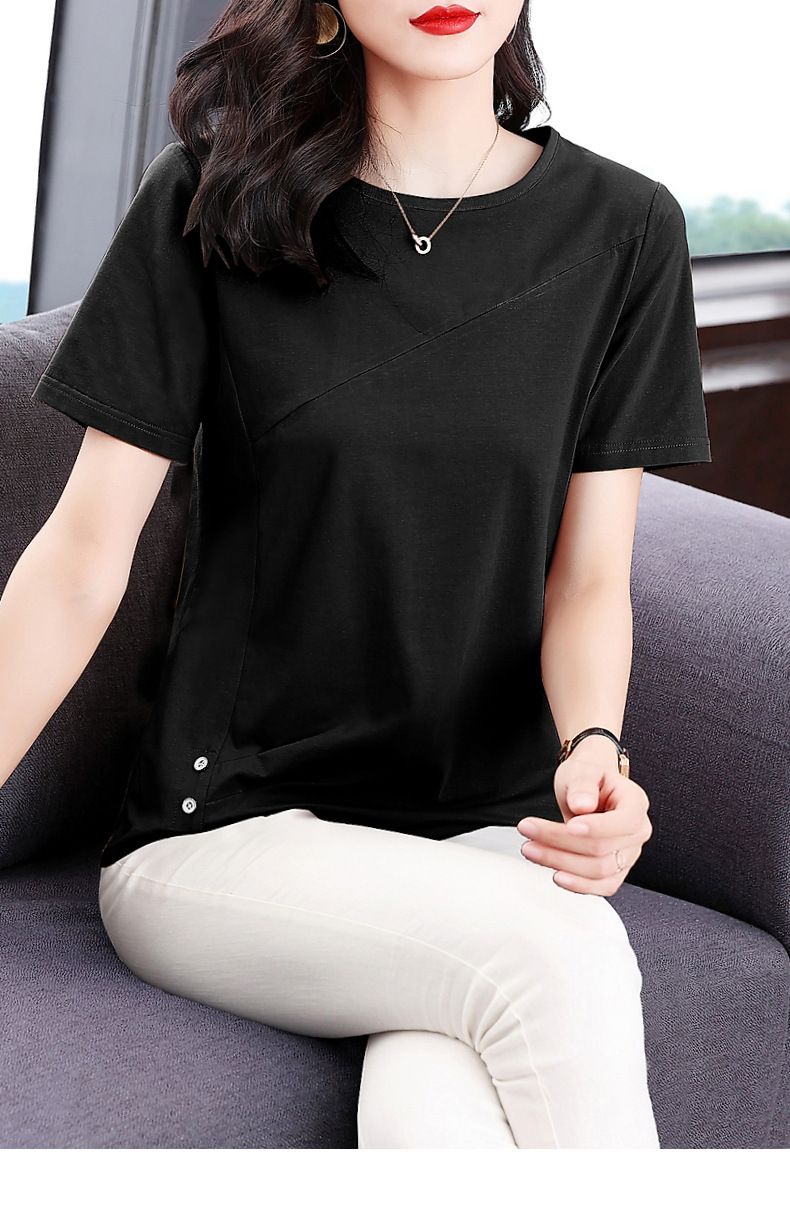 中年媽媽純色T恤【買一送一】【黑色】+【粉色】各一件(每件499元)