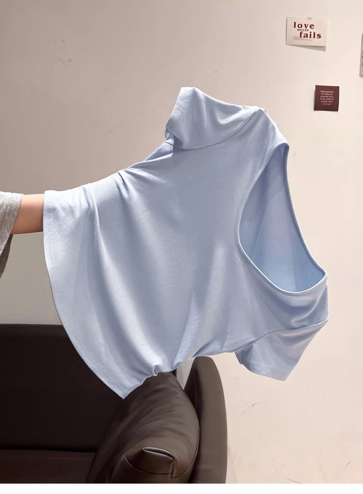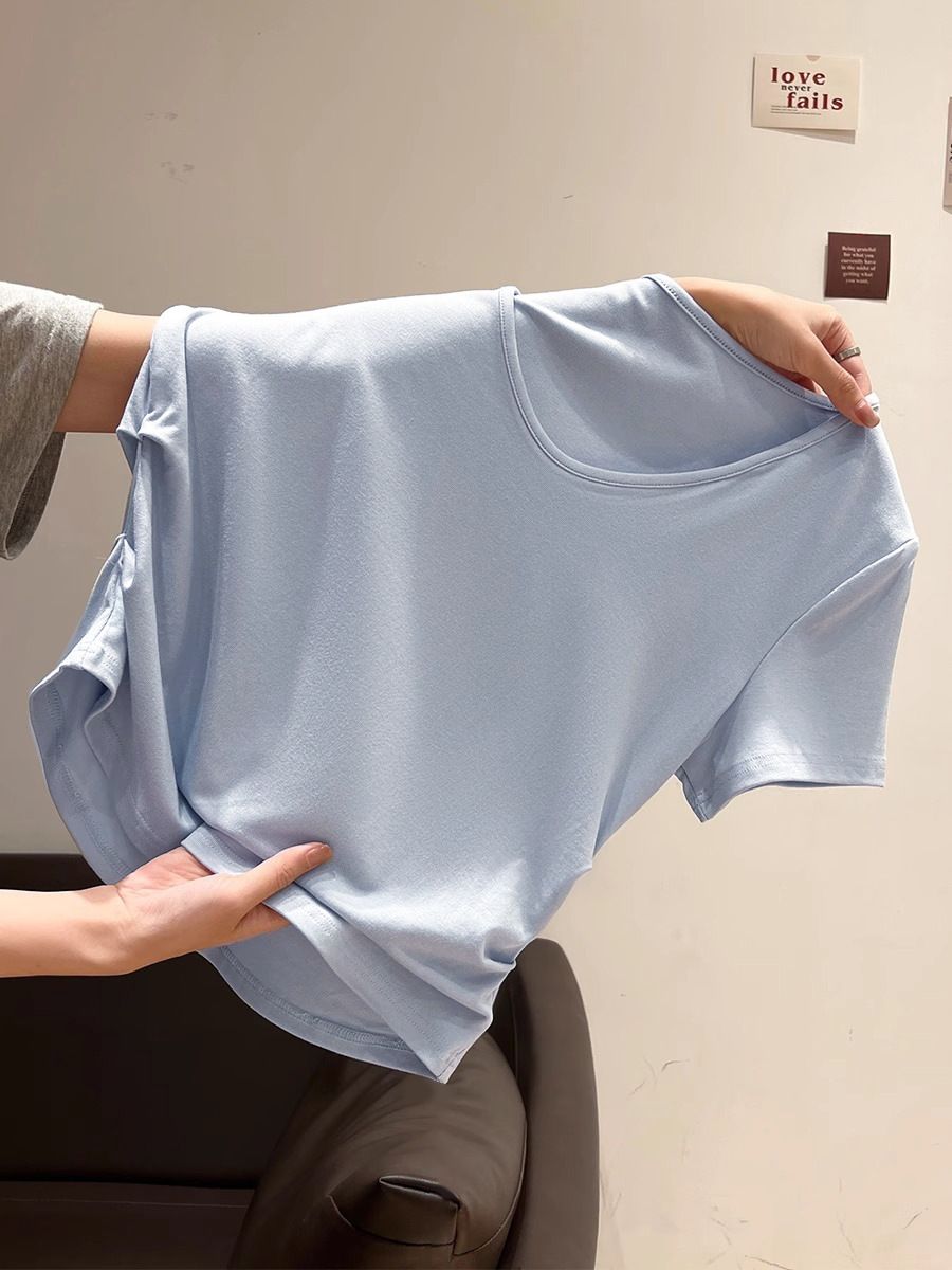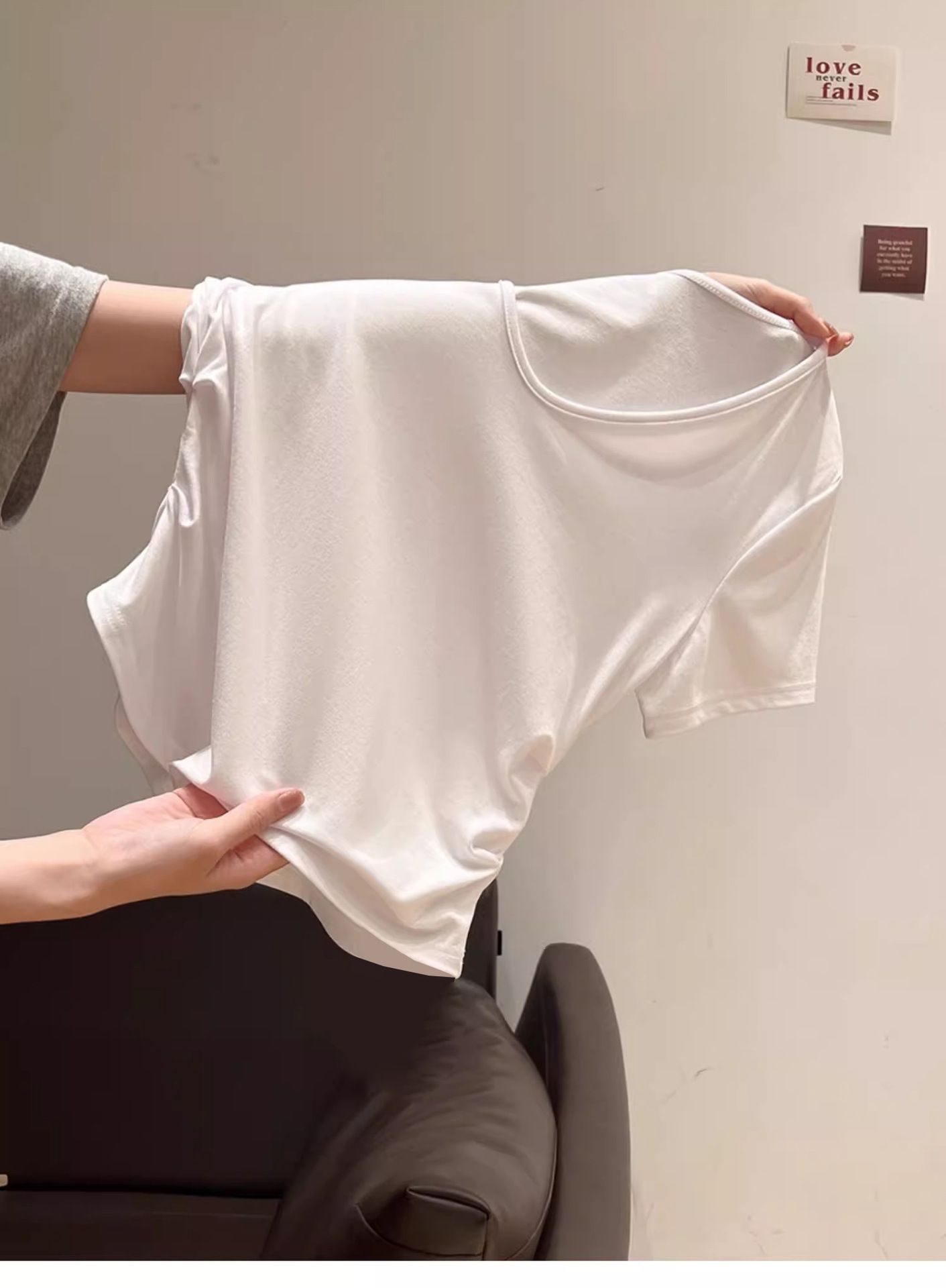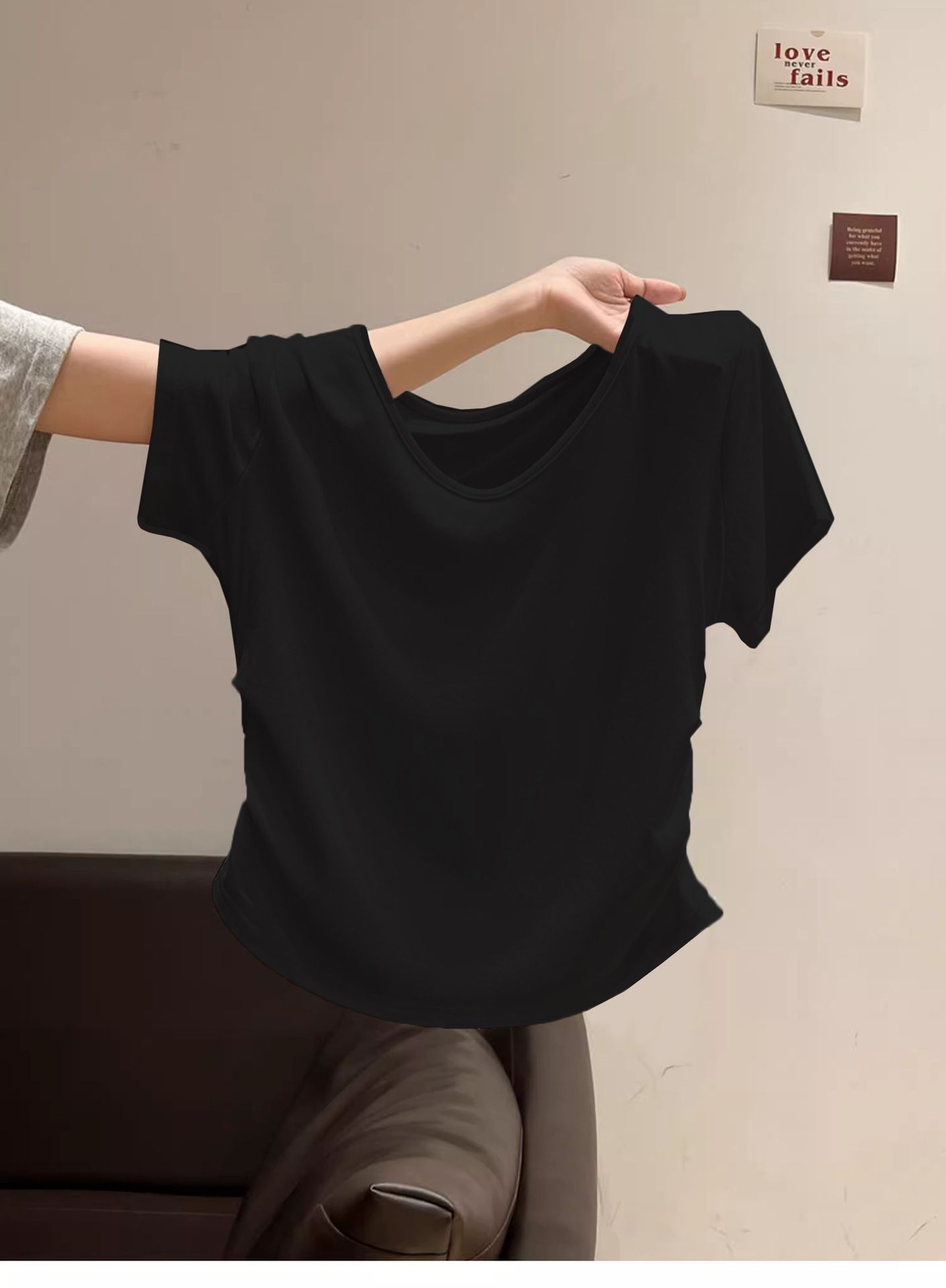 夏季短款褶皺收腰顯瘦高級V領T恤【買一送二】黑色+白色+藍色各一件(到手3件!每件均價333元!)