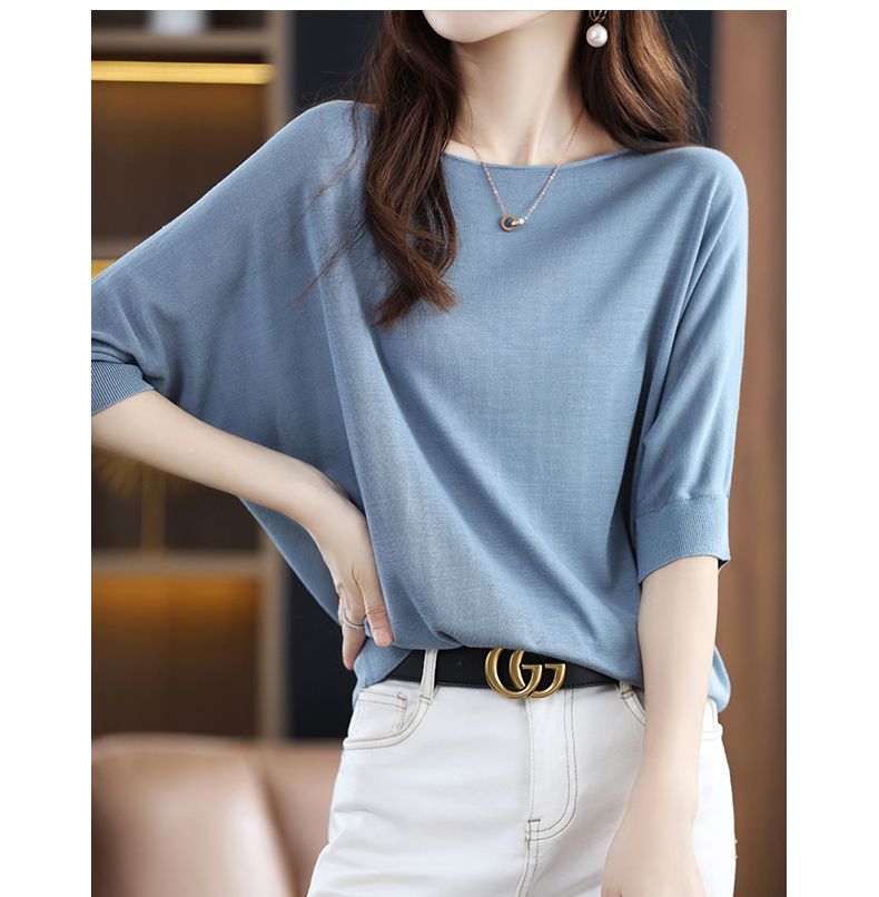 慵懶風洋氣中袖上衣【買一送一】藍色+黑色各一件(到手2件!每件均價449元!)