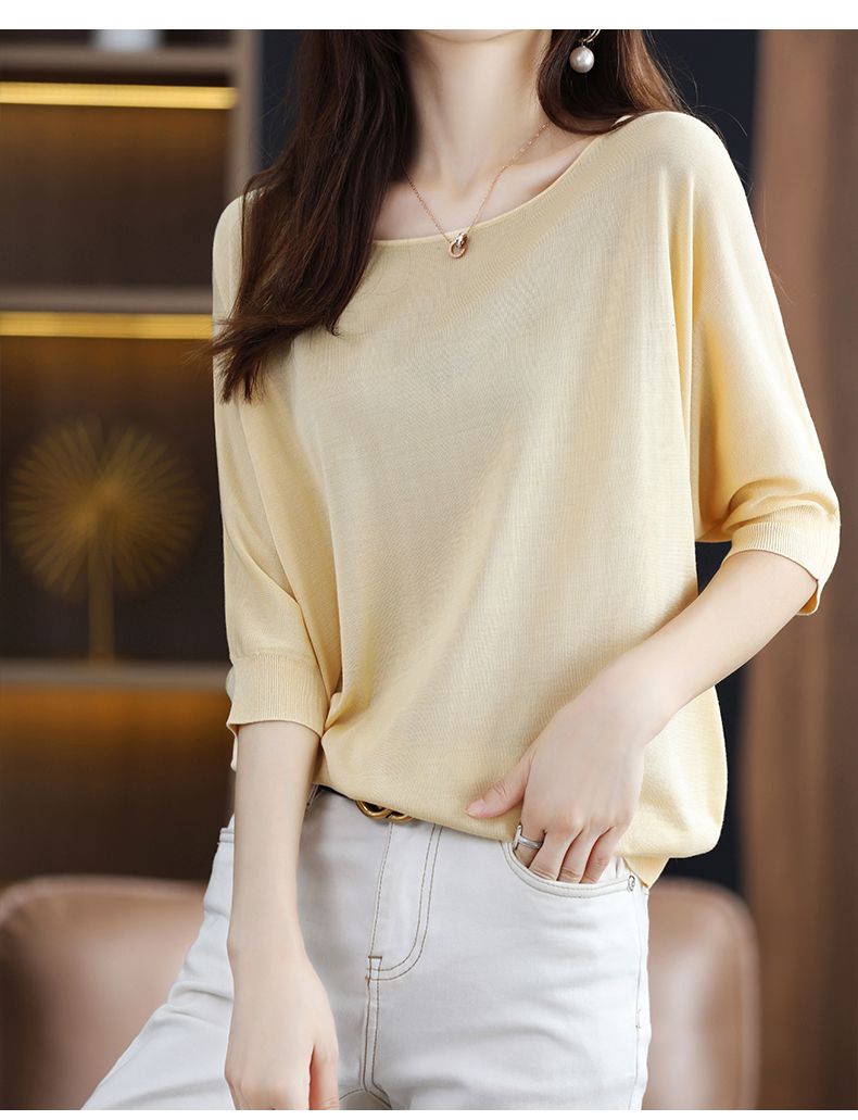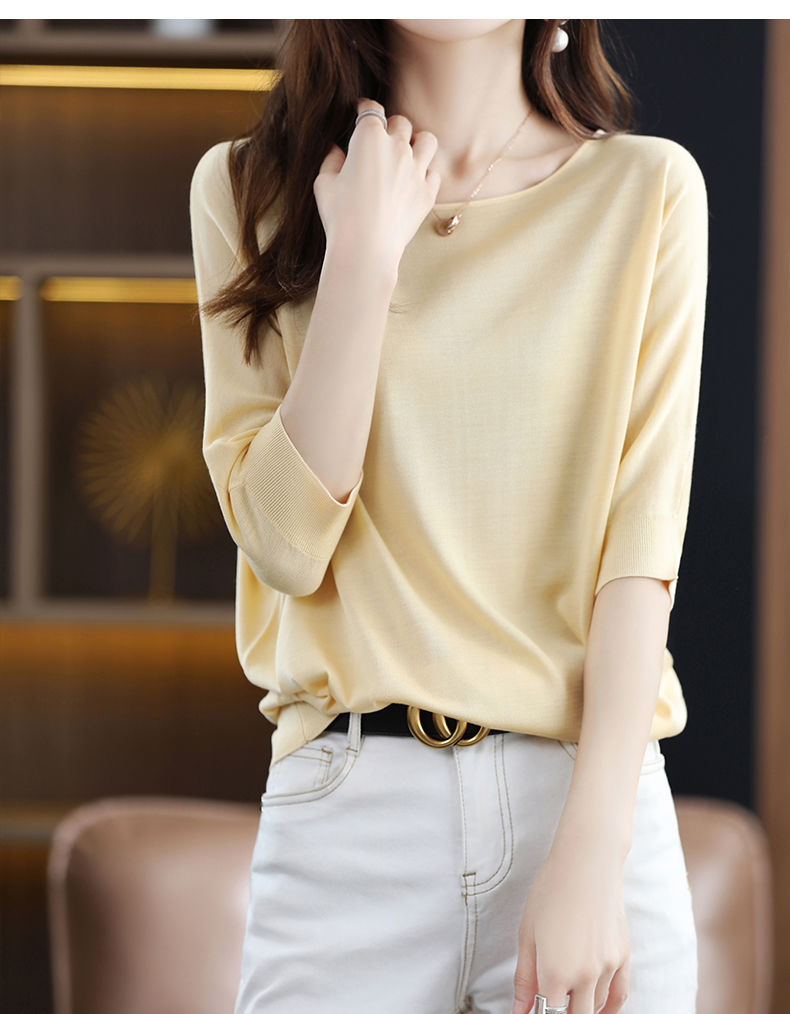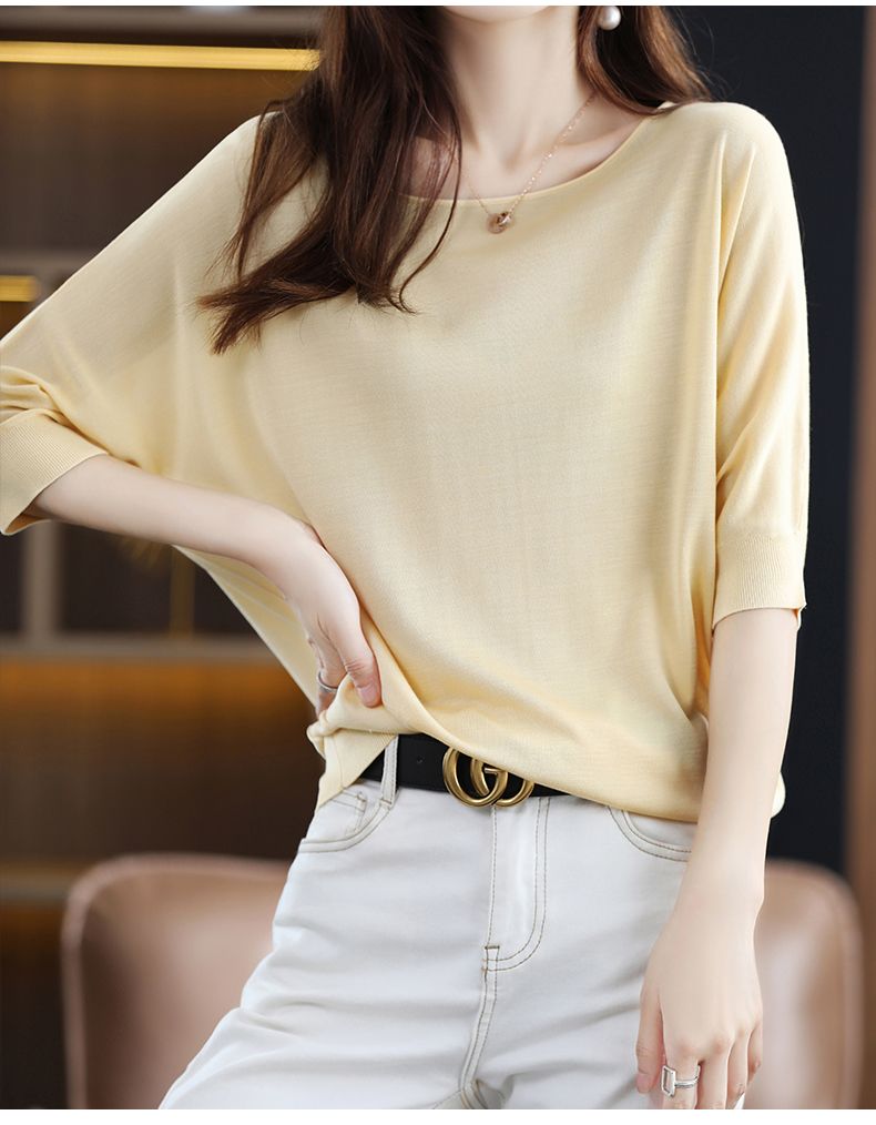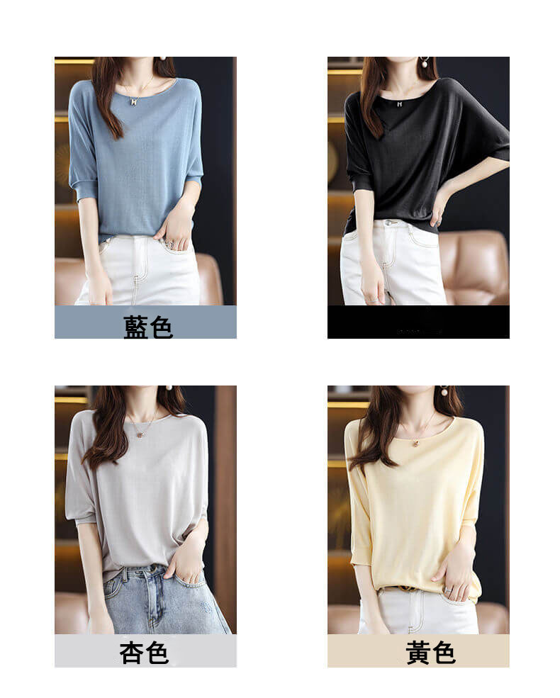 慵懶風洋氣中袖上衣【加400秒殺4件!】藍色+黃色+杏色+黑色各一件(到手4件!每件均價349元!)