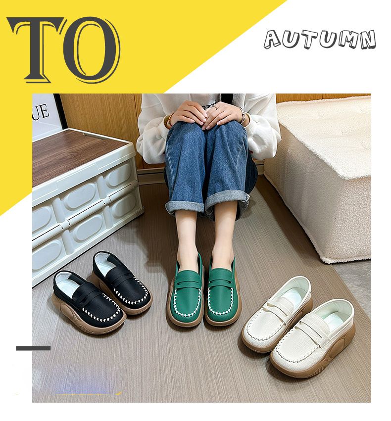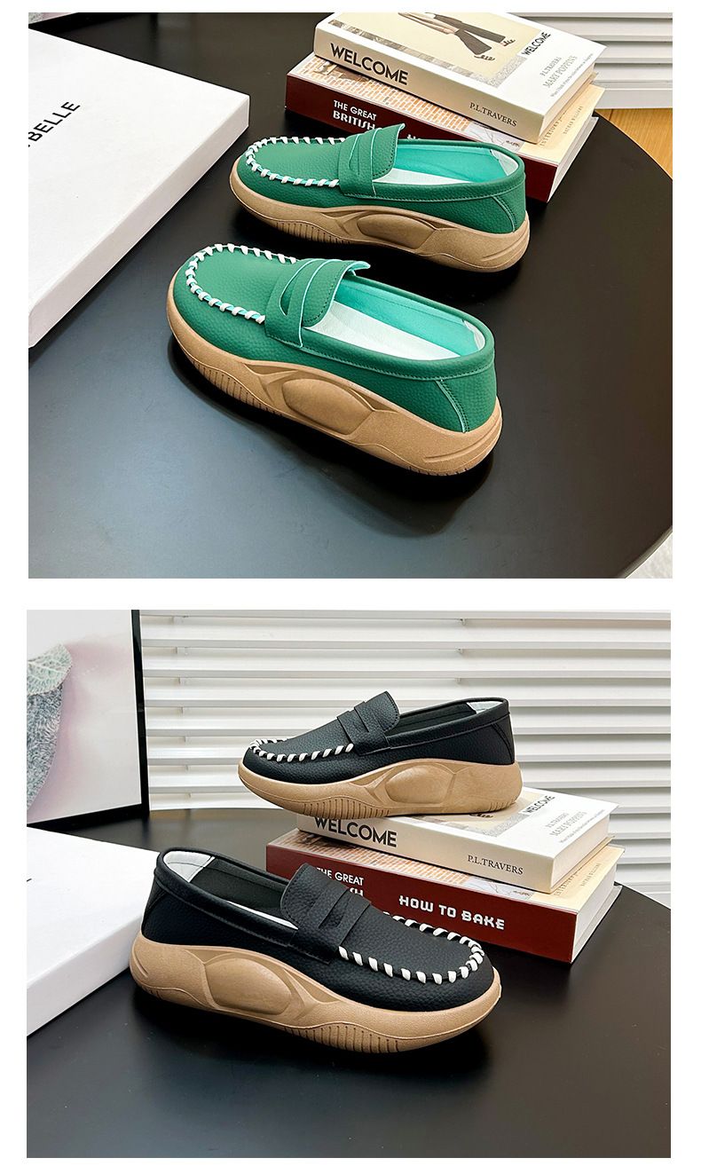 【步履輕盈】厚底增高透氣女鞋【米色】+【綠色】各一雙(到手兩雙,每雙均價549元!)