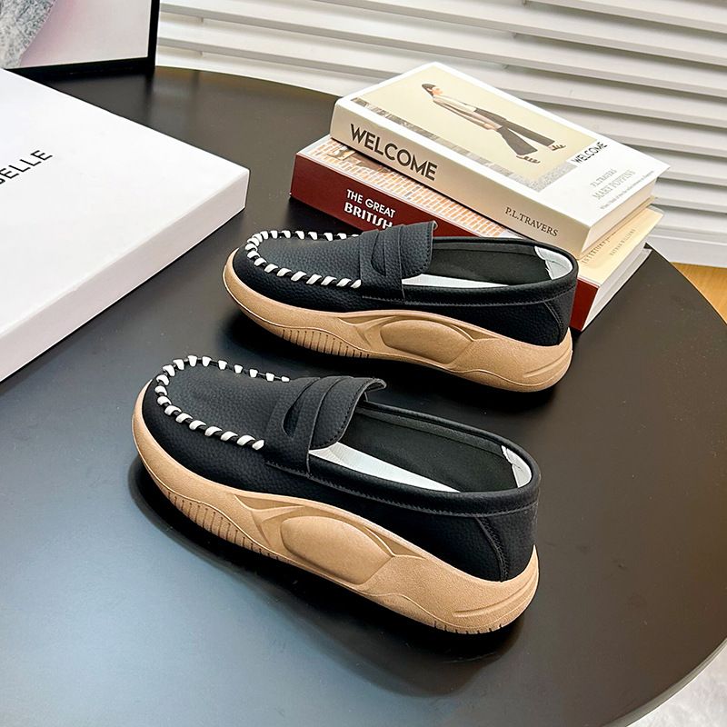 【步履輕盈】厚底增高透氣女鞋【米色】+【黑色】各一雙(到手兩雙,每雙均價549元!)